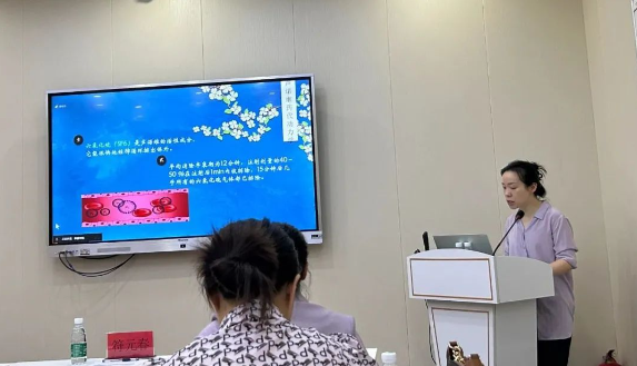 在《超声造影剂的配置及不良反应的处理》的课程上,她从造影剂的安全性、造影剂的配置、造影剂的不良反应及不良反应的处理四个方面论述,讲述了六氟化硫的病理作用和安全性,造影剂的配置方法及注意事项及不良反应的原因和处理方法。从而使大家清楚的明了了造影剂的使用、处理的操作规范。