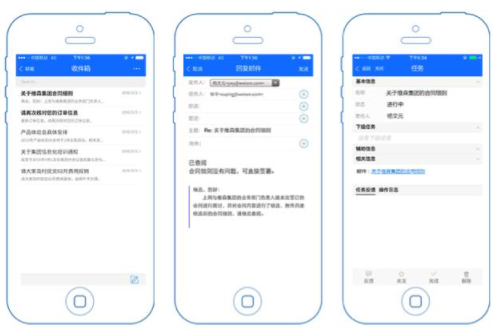 移动邮件不同于一般的移动端邮件,通过与协同系统其它模块的集成,提供更全方位的邮件整合服务。